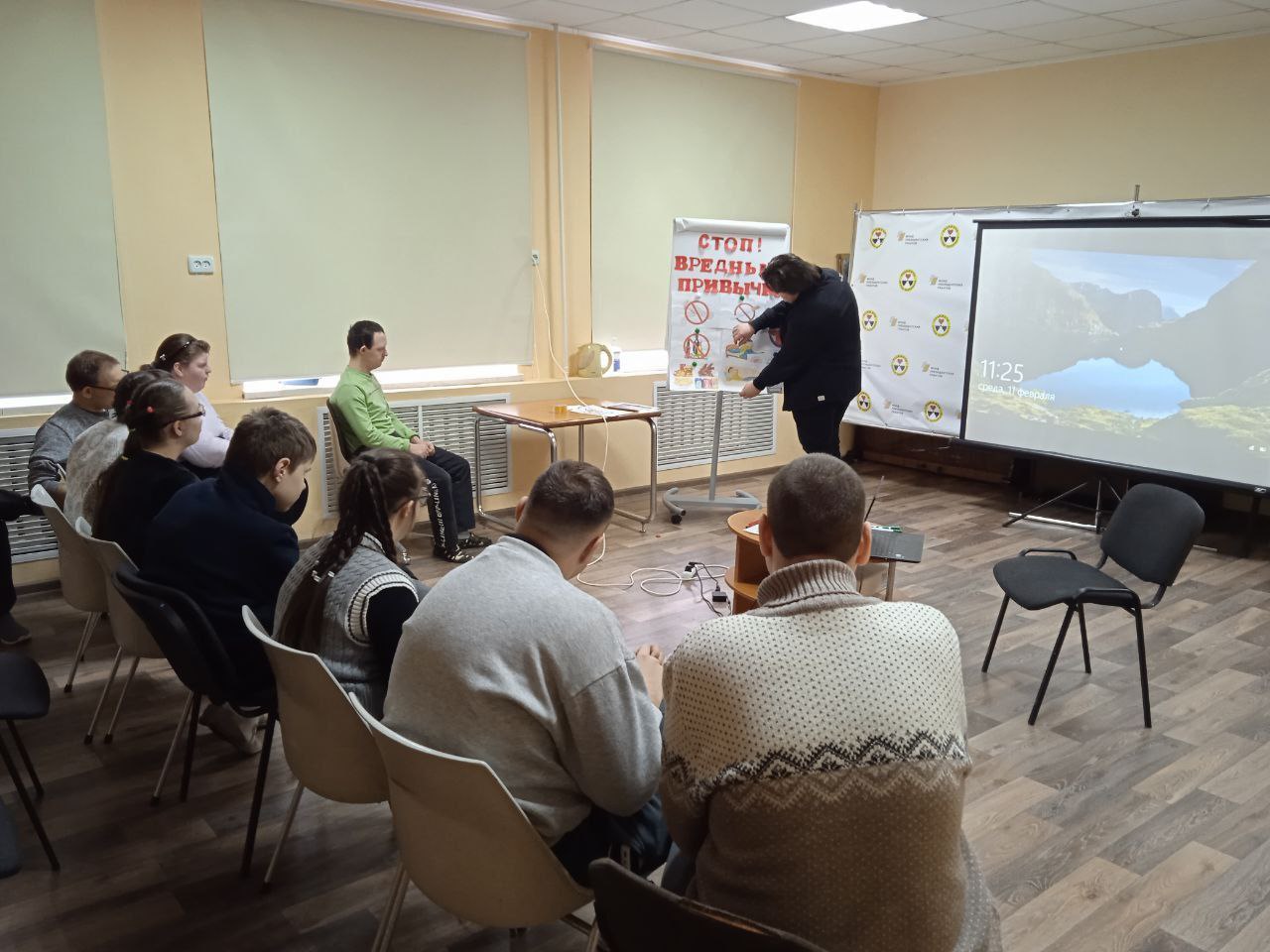 11.02.2026 года в общественной организации «Радимичи – детям Чернобыля» прошло занятие о пагубных привычках «Стоп! Вредные привычки». Вместо скучных лекций о вреде курения и здоровом образе жизни для ребят с ограниченными возможностями здоровья (далее ОВЗ) педагоги инклюзивных мастерских «Радимичи» и Молодёжного центра организовали «живой» диалог с использованием мультимедиа и демонстрационного материала.
