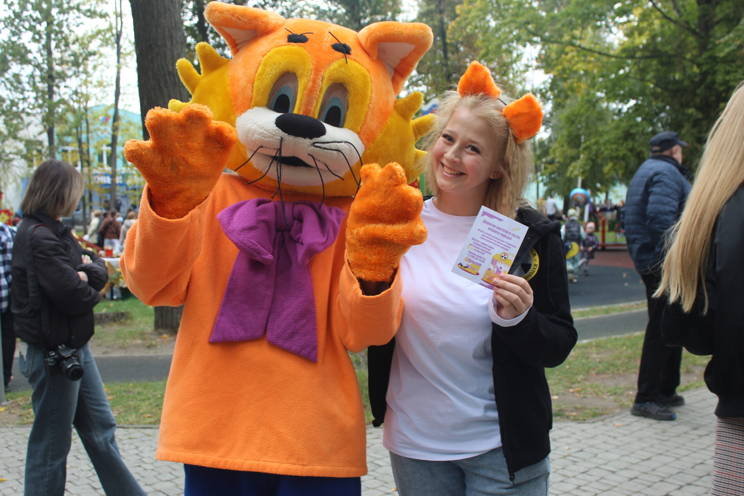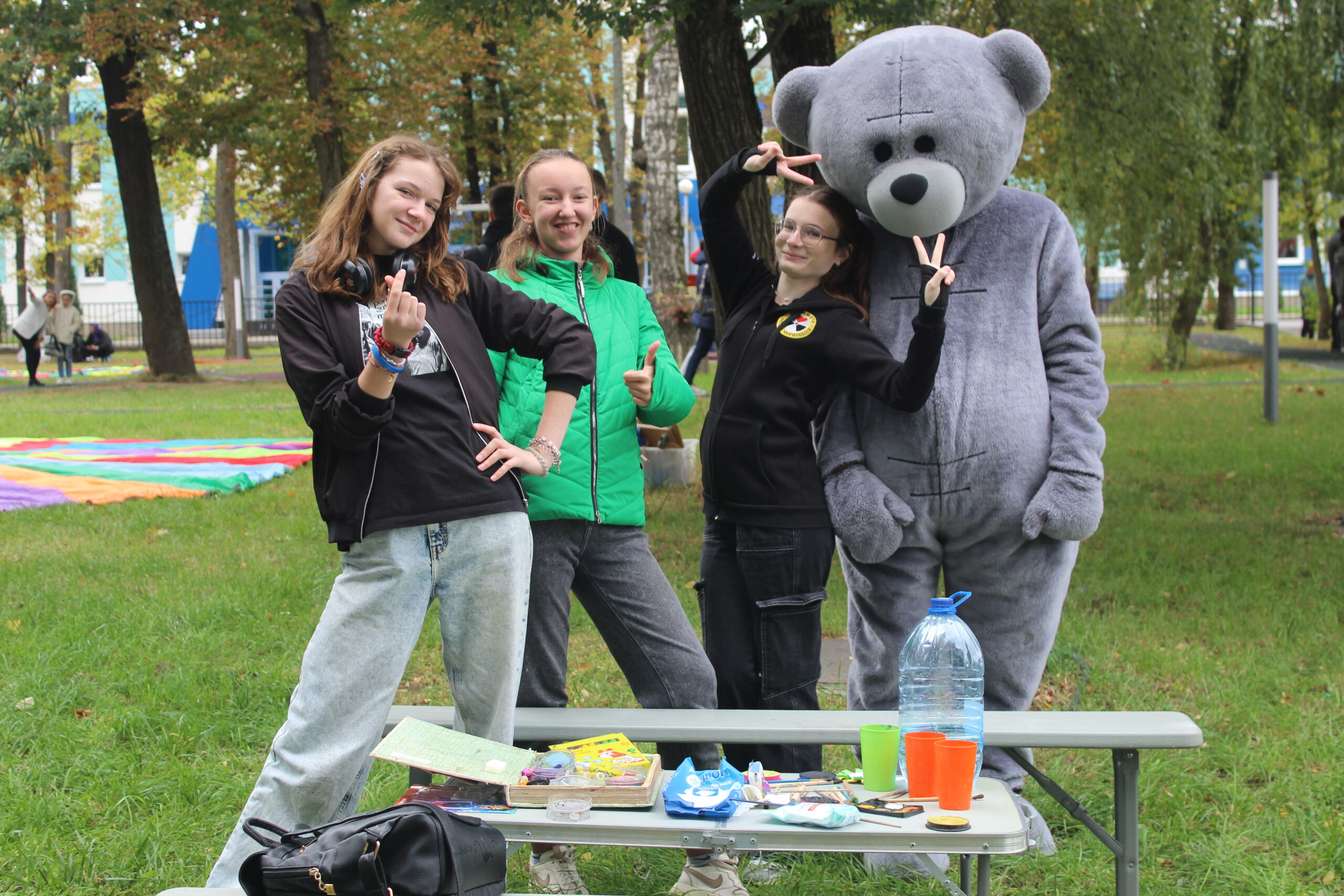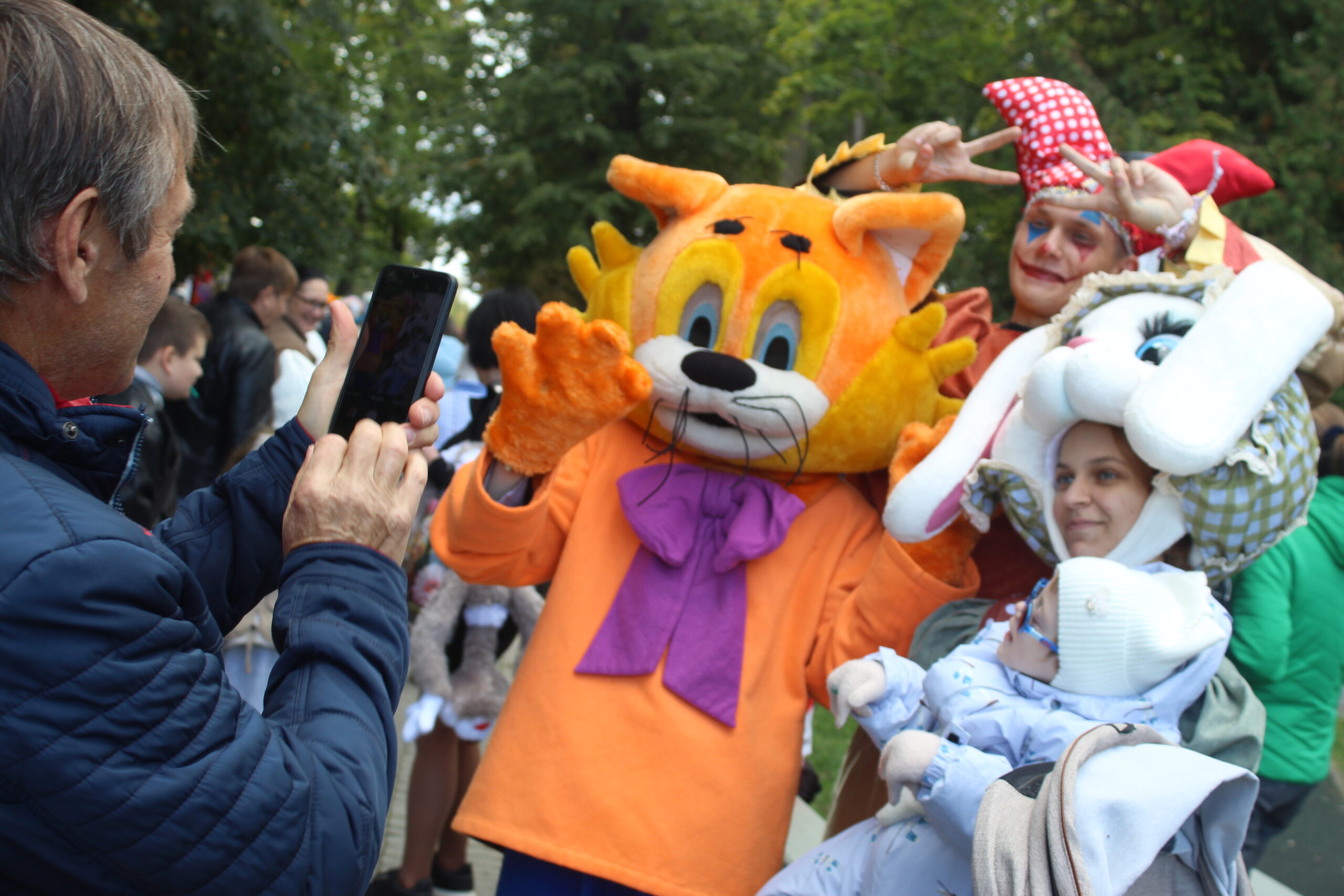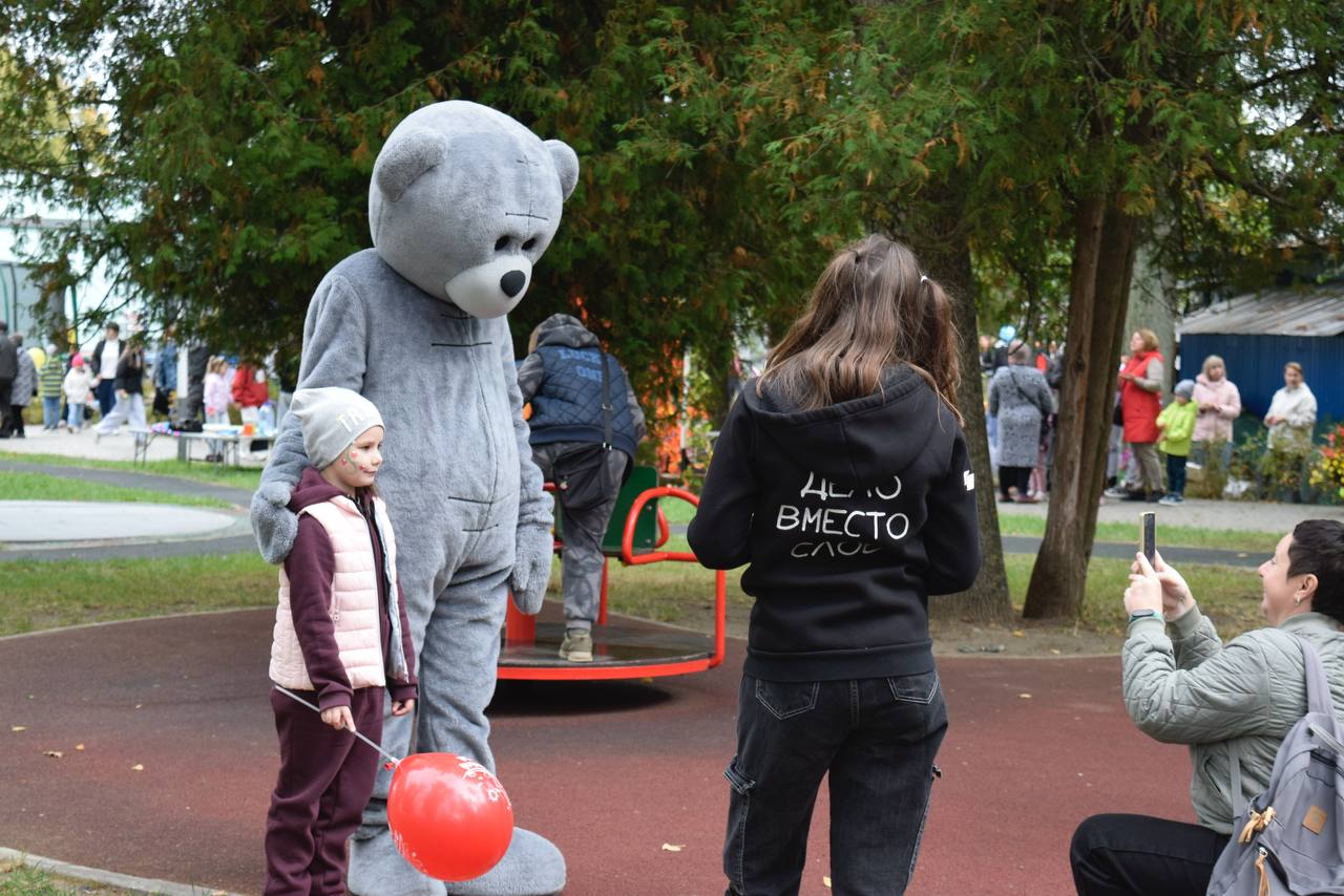 🎈 А главными звёздами праздника стали ростовые куклы: весёлый Миньон, добрый Кот Леопольд и мудрый Серый Медведь — они гуляли по парку, обнимались, шутили и дарили улыбки всем, кто проходил мимо!