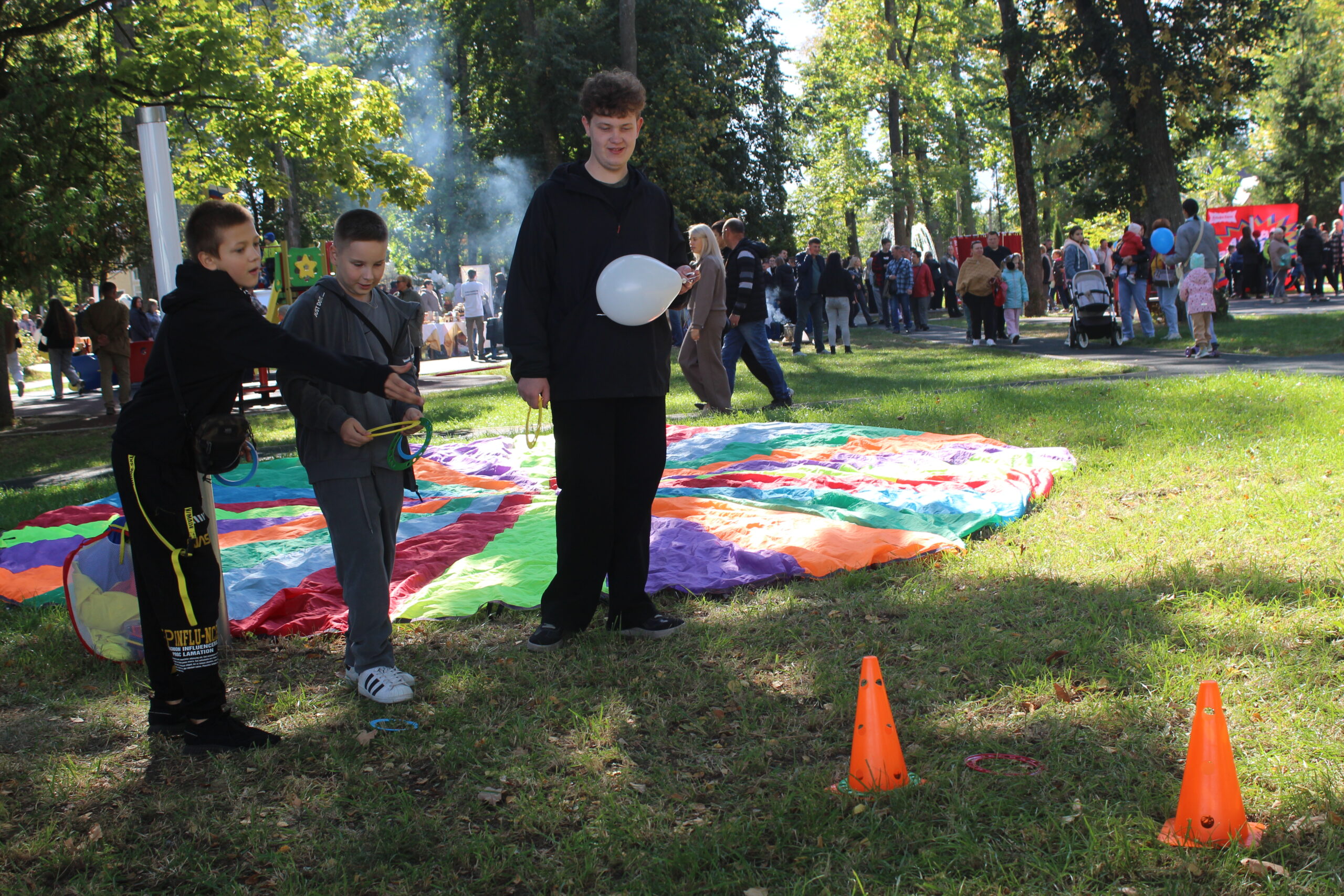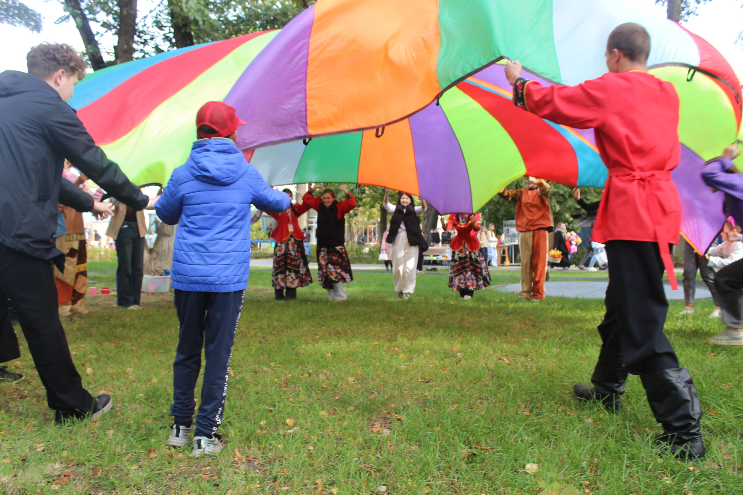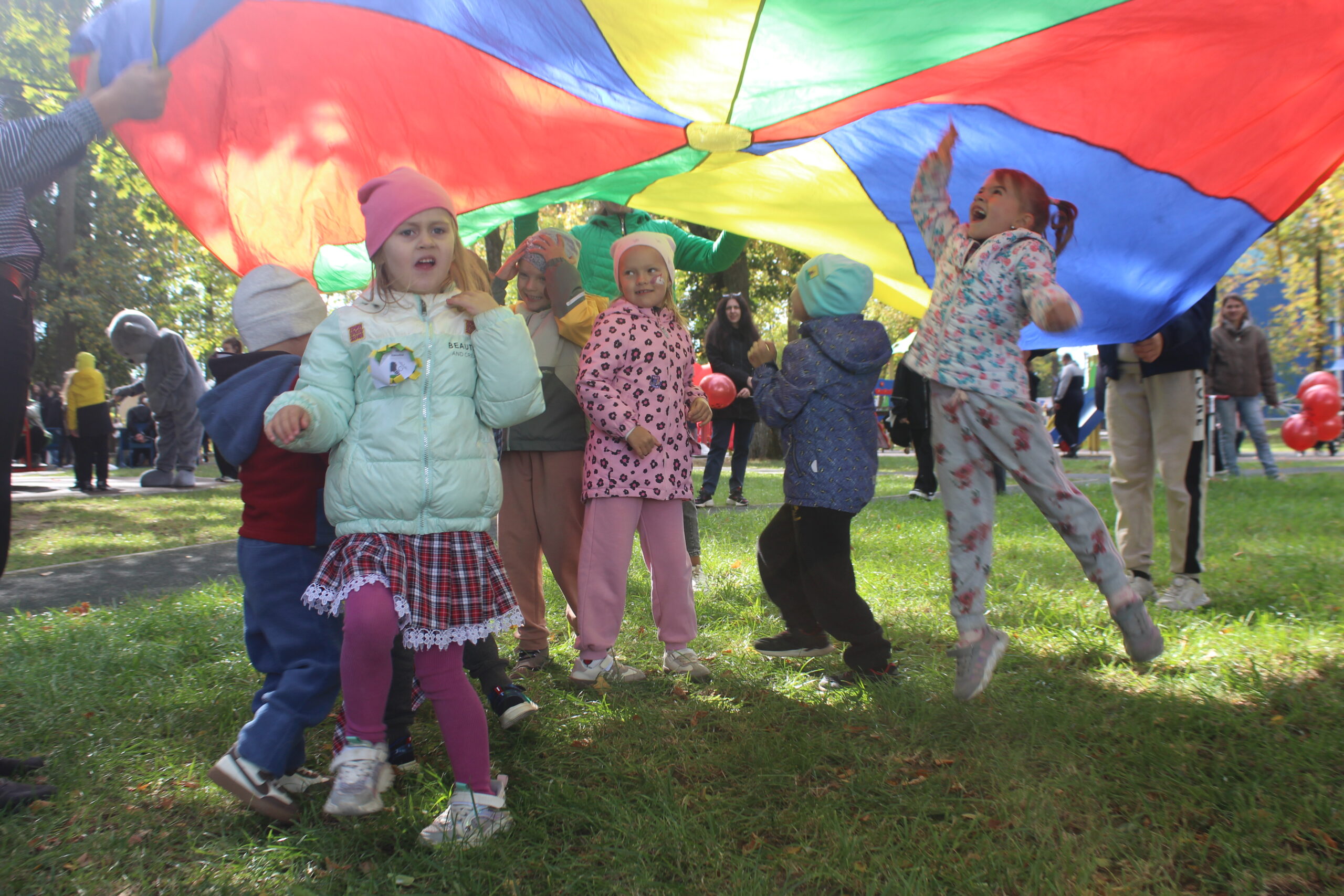 🧸 Игры «От мала – до велика» где каждый мог найти занятие по душе. «Игры с парашютом», «Занимательные эстафеты», «Игры с интерактивной тканью “Сыр”».